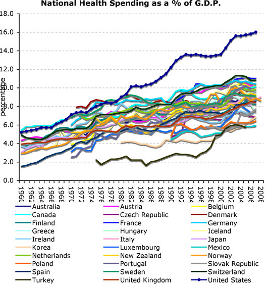 shouldn’t trust any numbers or statistics, but it also seems naive to completely ignore the politics that goes into obtaining a number. I’ve seen charts that show health spending growth by country. Depending on which countries are included on the chart, some make it look like the United States’ health spending growth is pretty average, others make it look like we’re an extreme outlier (implying something should be done about it NOW!). But maybe this is all a good thing. I mean, if no one was convinced that healthcare is a problem, would we be going through this whole “let’s improve healthcare” movement? Probably not.