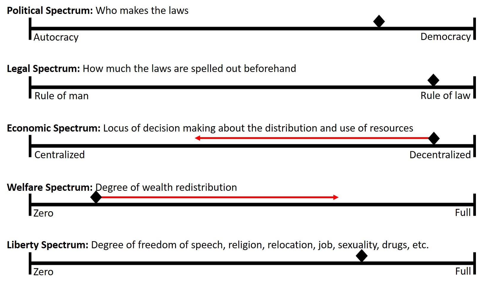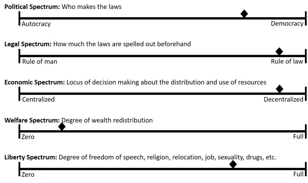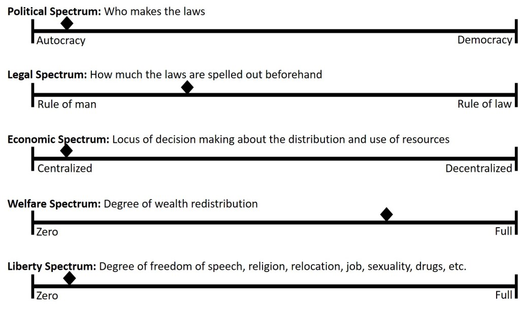Reading this was quite an interesting experience because, with every point Hayek made, I could visualize which spectrum he was talking about and interpret his explanations in terms of which direction (and how far) a country would slide along that spectrum.