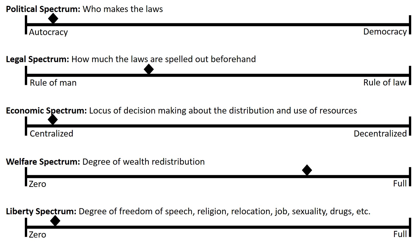 I recently read (listened to) The Road to Serfdom by Friedrich Hayek. The interesting thing is that he seemed to be using my framework for categorizing governments. So I’d like to restate his main points in the context of my framework.