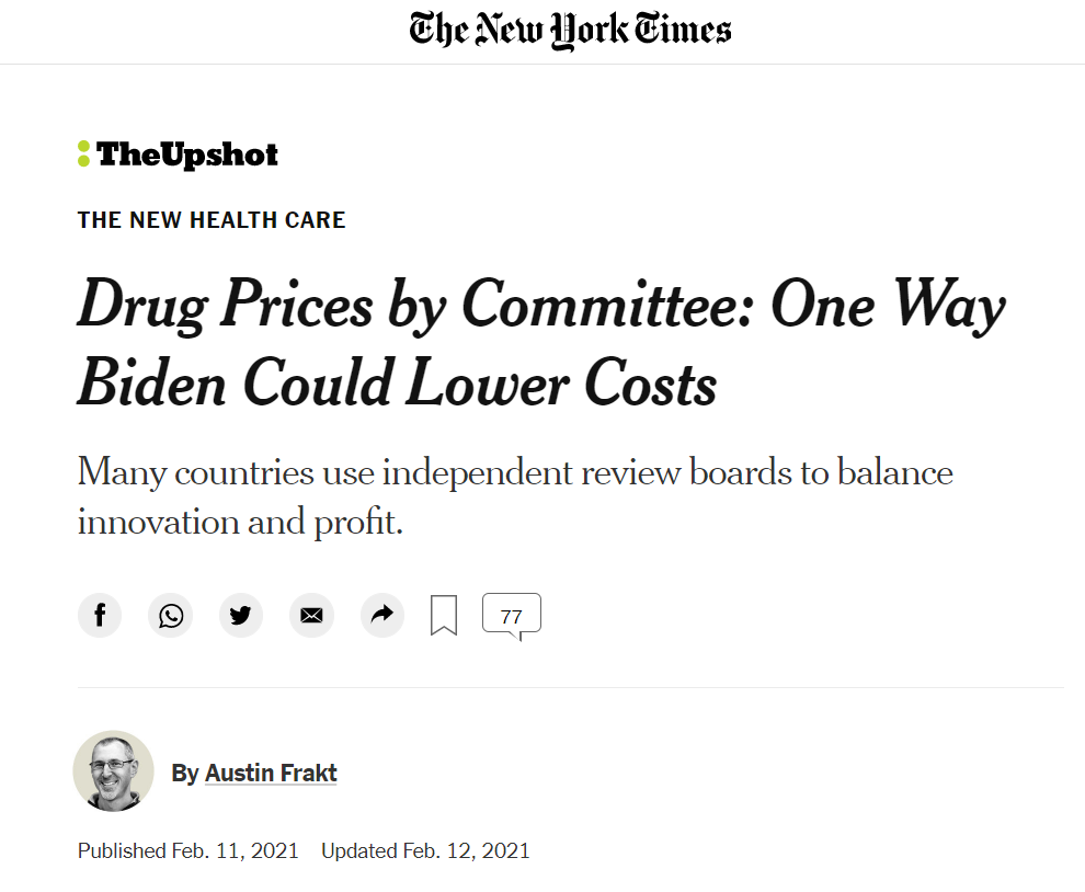 There is a whole independent nonprofit group dedicated to helping figure out the therapeutic value of drugs, and it’s called the Institute for Clinical and Economic Review (ICER). Some have proposed Medicare use the recommendations from ICER, but these days the trending proposal (which essentially accomplishes the same thing but is more politically palatable) is to instead look at the prices other countries set for drugs (presumably based on therapeutic value assessments) and then set our prices similarly. This is referred to as international reference pricing.